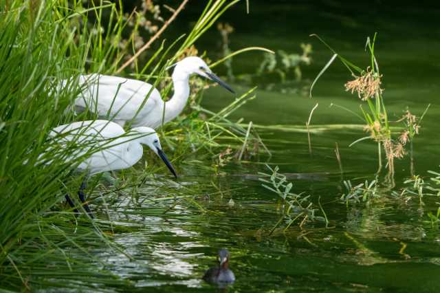 Egrets fishing