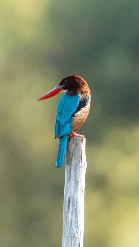 This time, the back of the white throated Kingfisher, with it’s colourful wings.