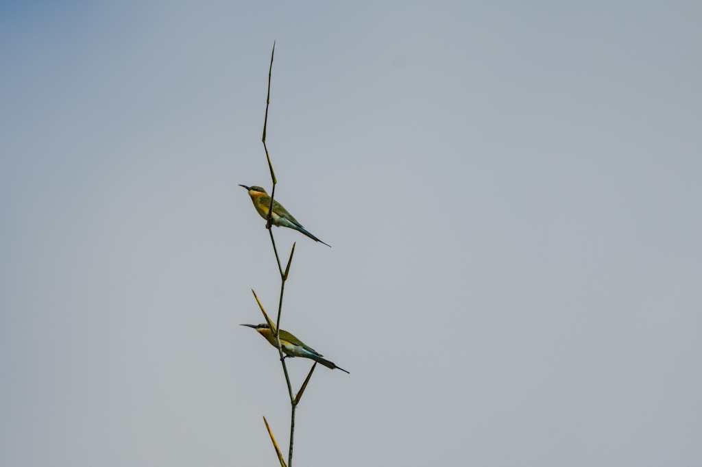 Bee eaters on a bamboo twig