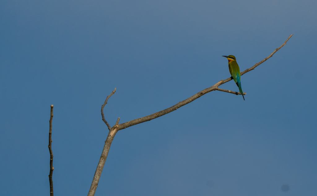 - Coloration: As the name suggests, it has a beautiful blue tail. The upper body is predominantly green, transitioning into a bright yellow belly.