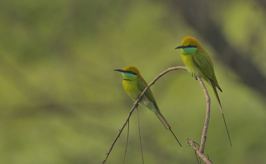 Two bee eaters were sitting on a perch in the shade during a birding walk from last November.