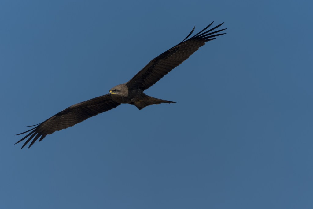 Black kite in flight