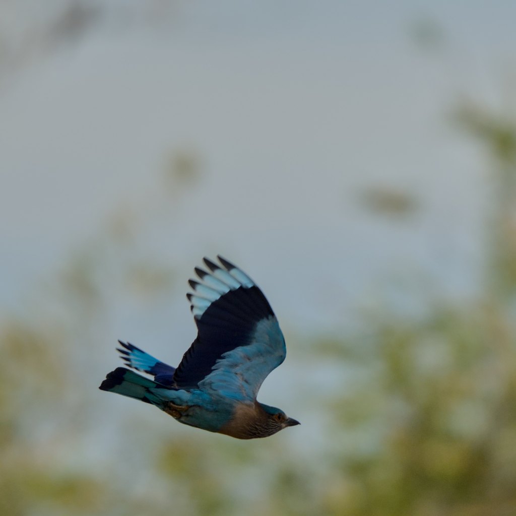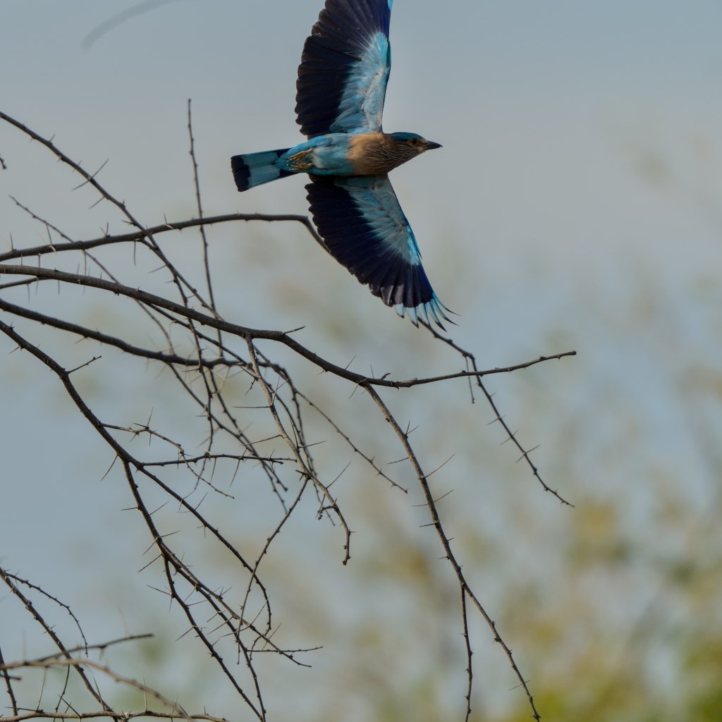 Missed that full wing open to the frame. Indian Roller bird in action.