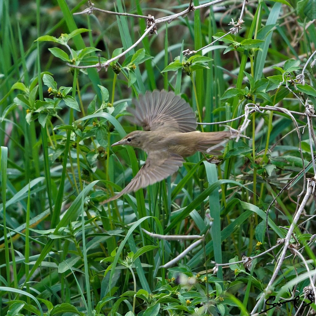 A booted warbler trying to evade me. This was before, it camouflaged itself in the bushes.