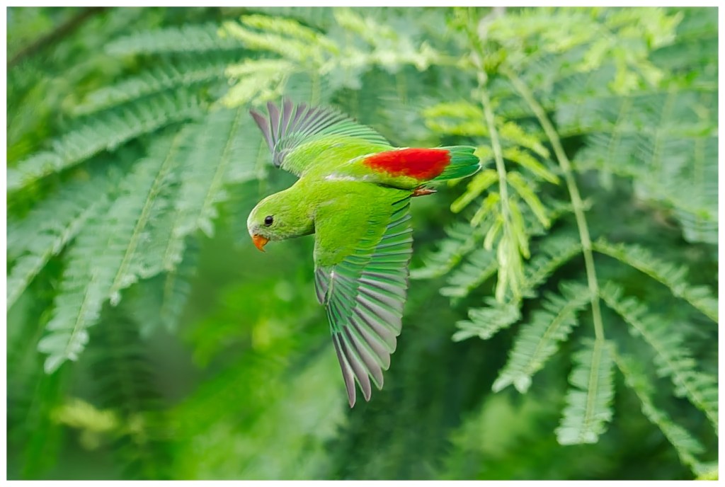 We didn’t get what we hoped for with this cute fellow. If the parrot’s called a hanging parrot , it would be a miss if I didn’t share a hanging shot however mediocre they may be. I wish it was feeding closer than this. Anyways, here goes.