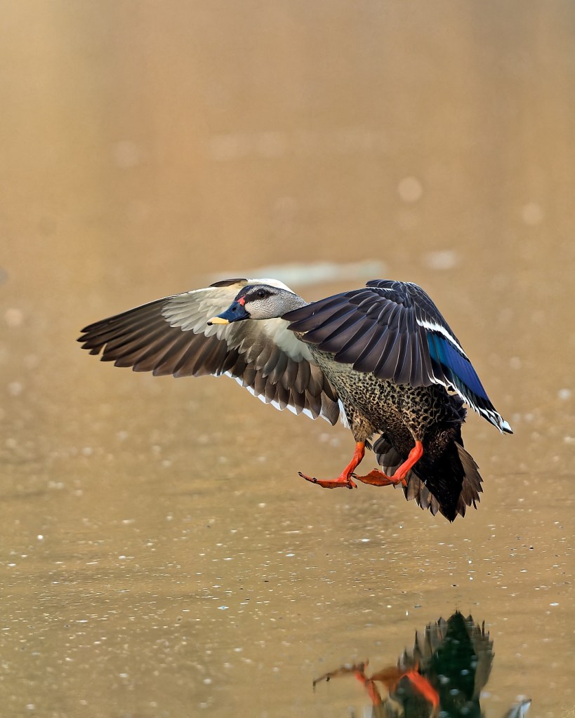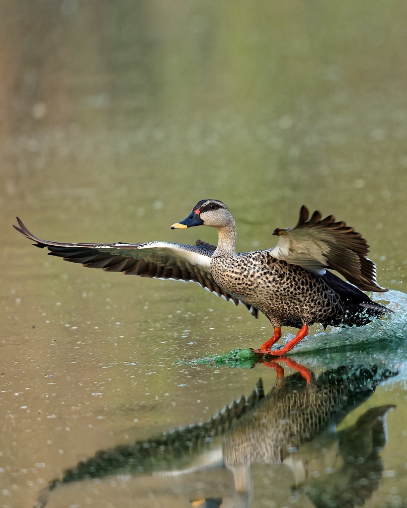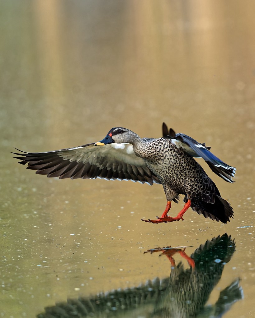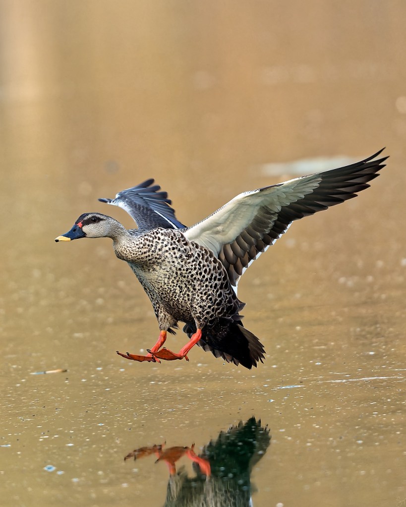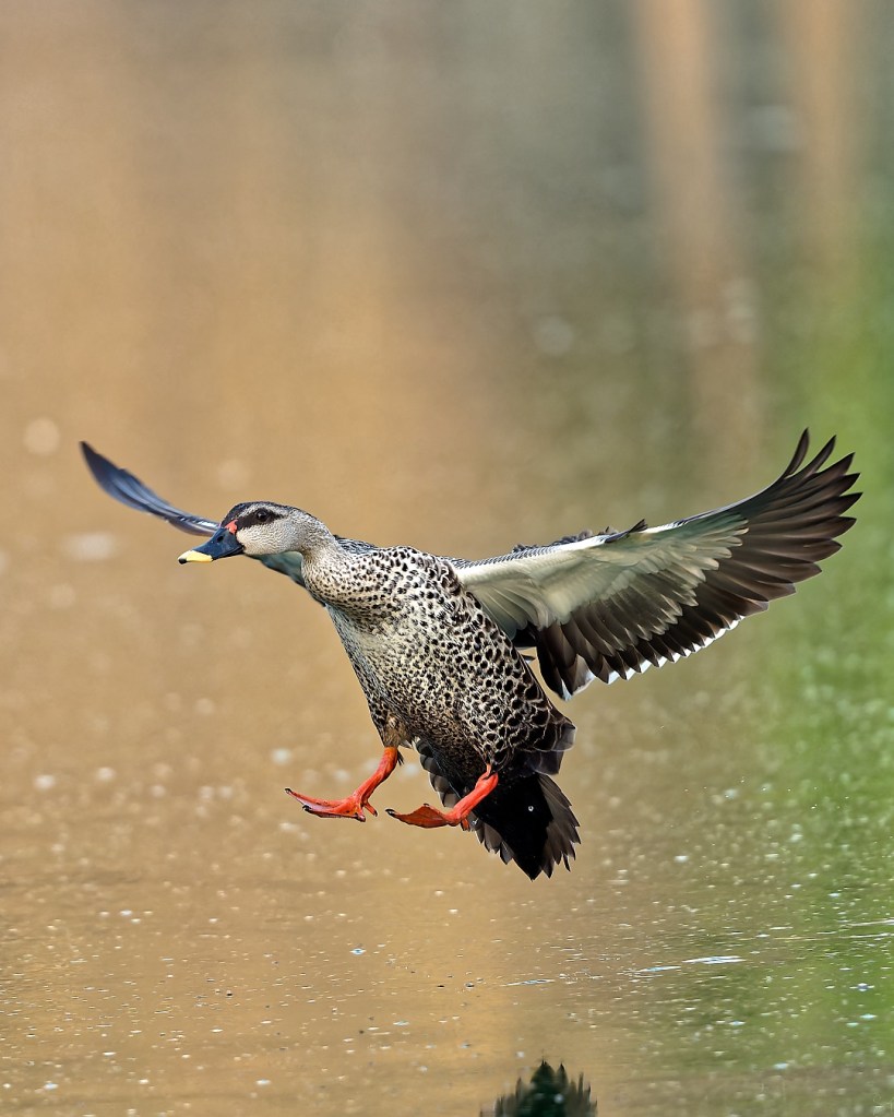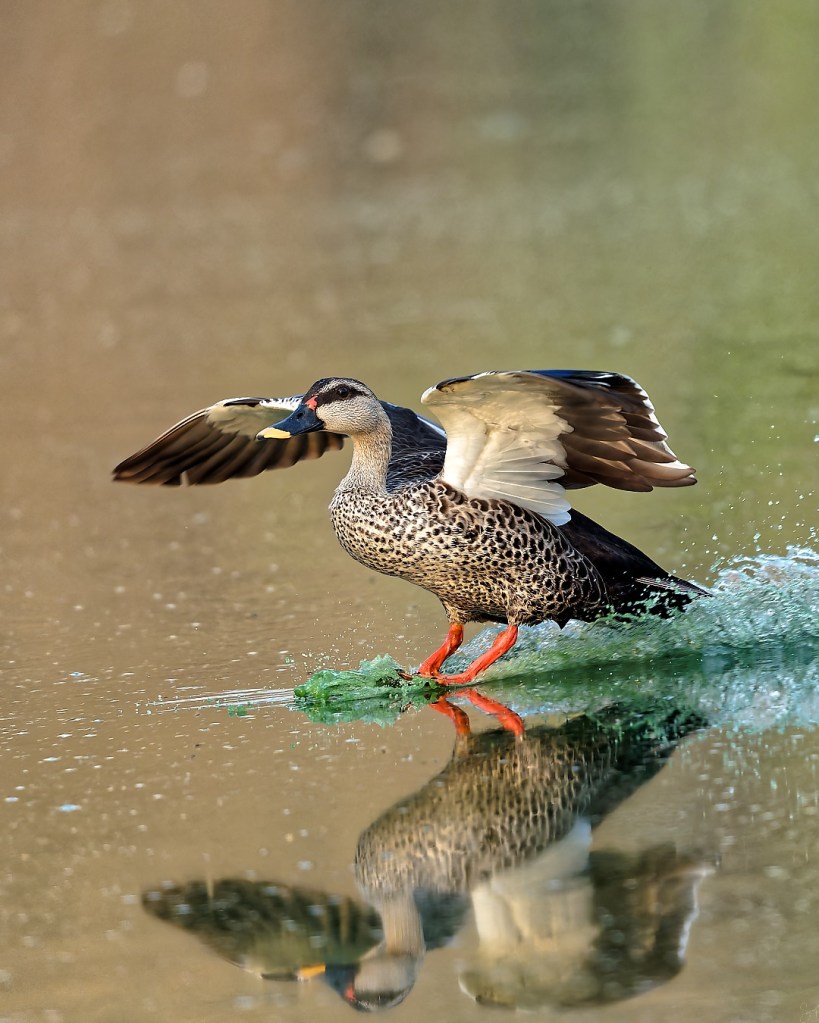 The Indian Spot-billed Duck makes its grand entrance — wings wide, feet skimming the water, leaving barely a ripple in its wake. Nine frames, one perfect story. 🦆💦✨