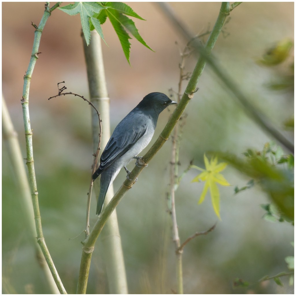 The Black-headed Cuckooshrike perches quietly among the green stems, elegant in its simplicity. Sometimes two colours are all you need. 🖤🤍🌿
